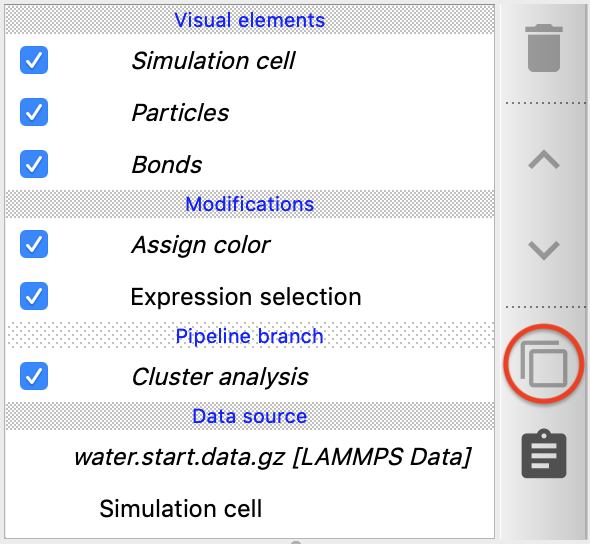 After the cloning operation has been executed, you will see the newly created pipeline in the pipeline editor of OVITO: