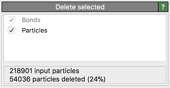 This modifier deletes all currently selected data elements (i.e. particles, bonds).