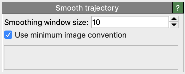 This modifier smoothes the particle motion by taking into account successive snapshots of a simulation trajectory. Depending on the value of the Smoothing window size parameter, the modifier will either perform a time-based averaging of the particle coordinates over several input frames or a linear interpolation between consecutive frames, see below.