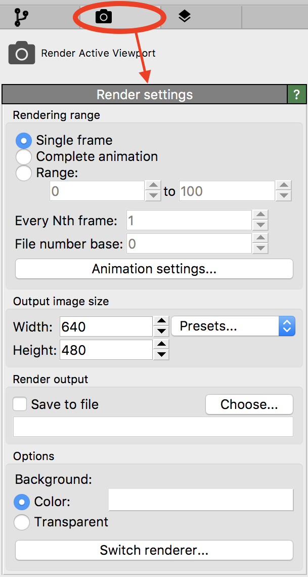 OpenGL renderer | Hardware-accelerated renderer, which is also used for realtime display in the interactive viewports |
