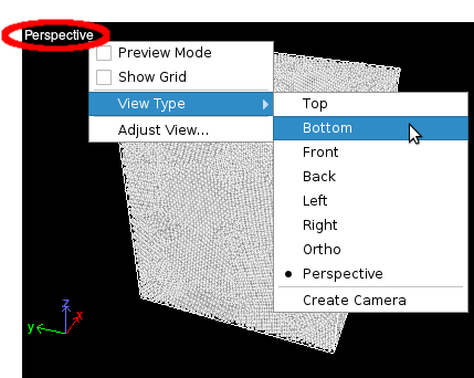 The viewport windows show the three-dimensional scene containing the loaded dataset. OVITO's main window has four viewports, laid out in a two by two grid, all showing the same scene from different perspectives. The label in the upper left corner of each viewport window and the axis tripod in the lower left corner indicate the orientation of the viewport's virtual camera.