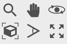 The viewport toolbar is located below the viewports and contains buttons to activate various navigation input modes. In addition, you will find two other useful functions here: