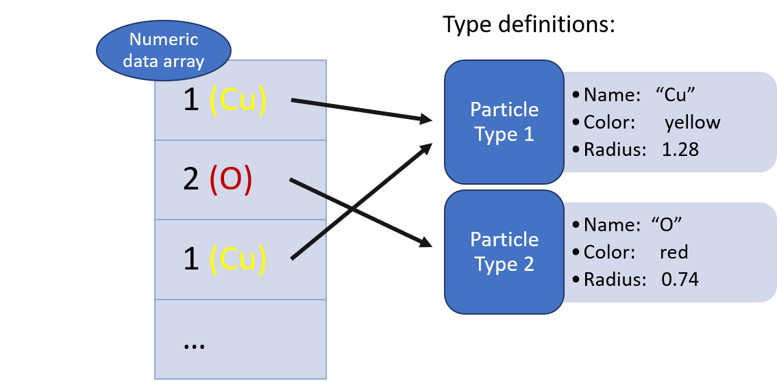 property is a common example: it stores each particle’s type ID (e.g., 1, 2, 3, …), with an associated table defining the